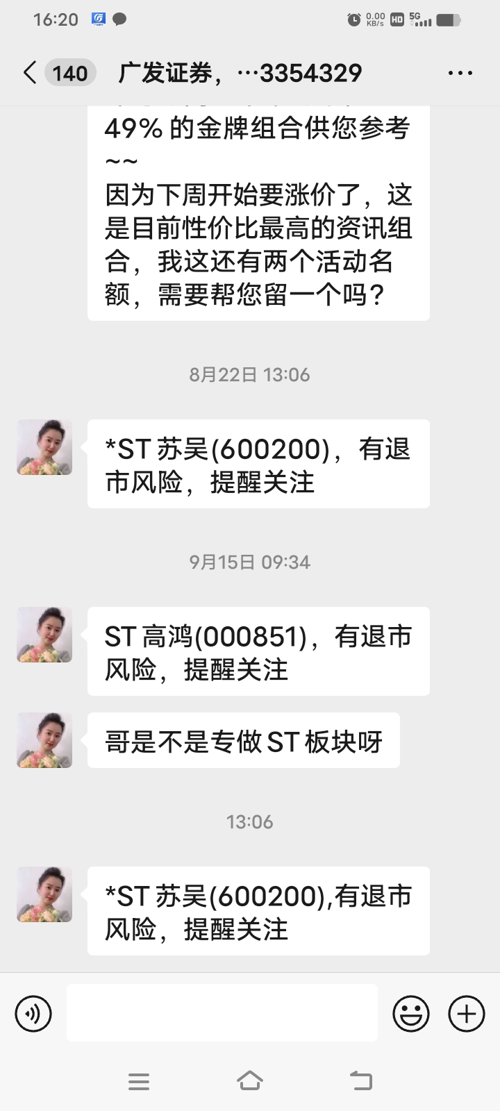 $*ST苏吴(SH600200)$ 客服经理又发信息来了,估计退市快了,高鸿参与翘板,客服经理就发信息来说了,然后我没听她了结果就退了,这货这几天会不会退心里悬吊吊的