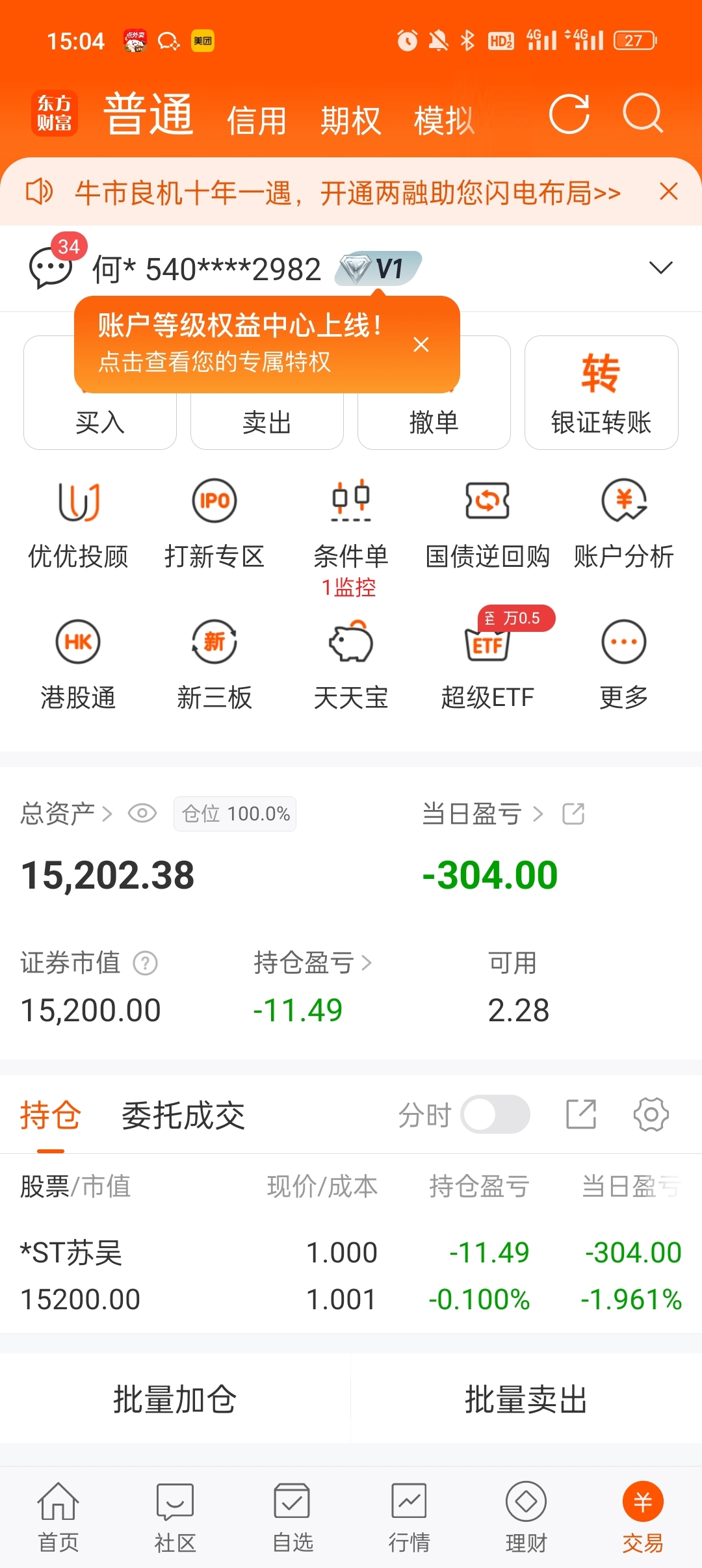 $*ST苏吴(SH600200)$ 拿苏吴的第四天,今天没操作-304