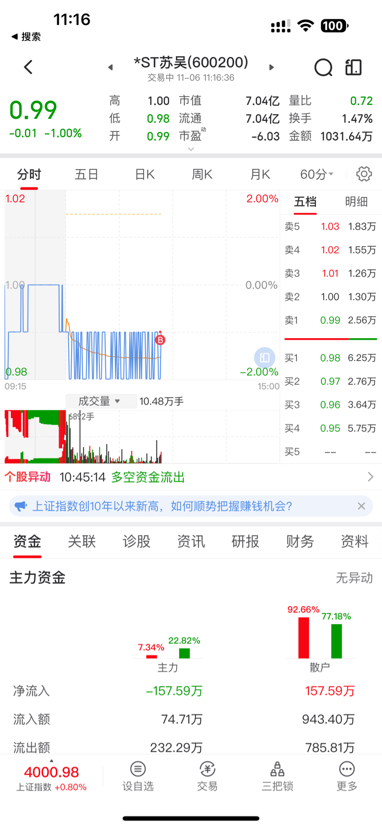 $*ST苏吴(SH600200)$ 干两手,忘记他,十年后给我翻一百倍