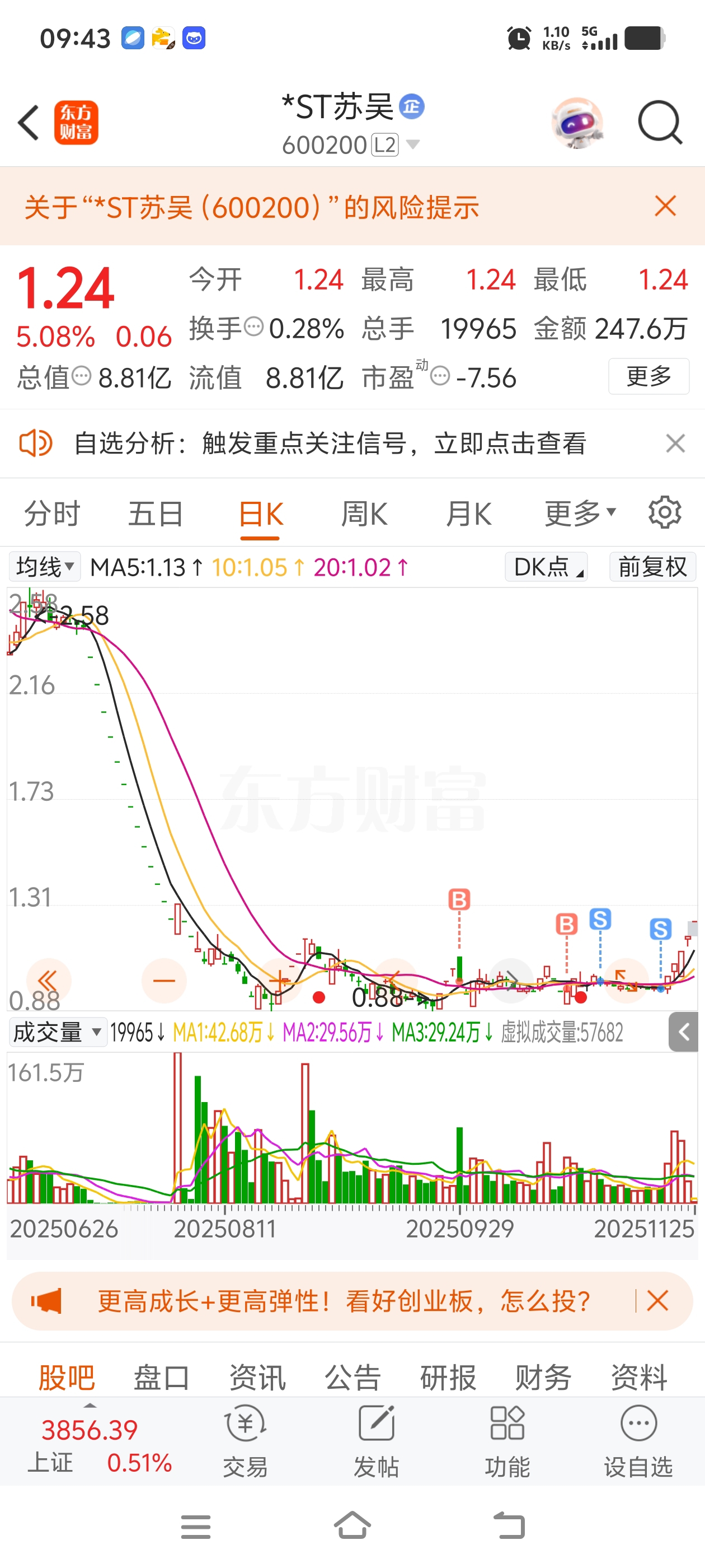 $*ST苏吴(SH600200)$ TM劳资拿你两个月都不连板涨,一卖你就连5个板,真的是牛马命