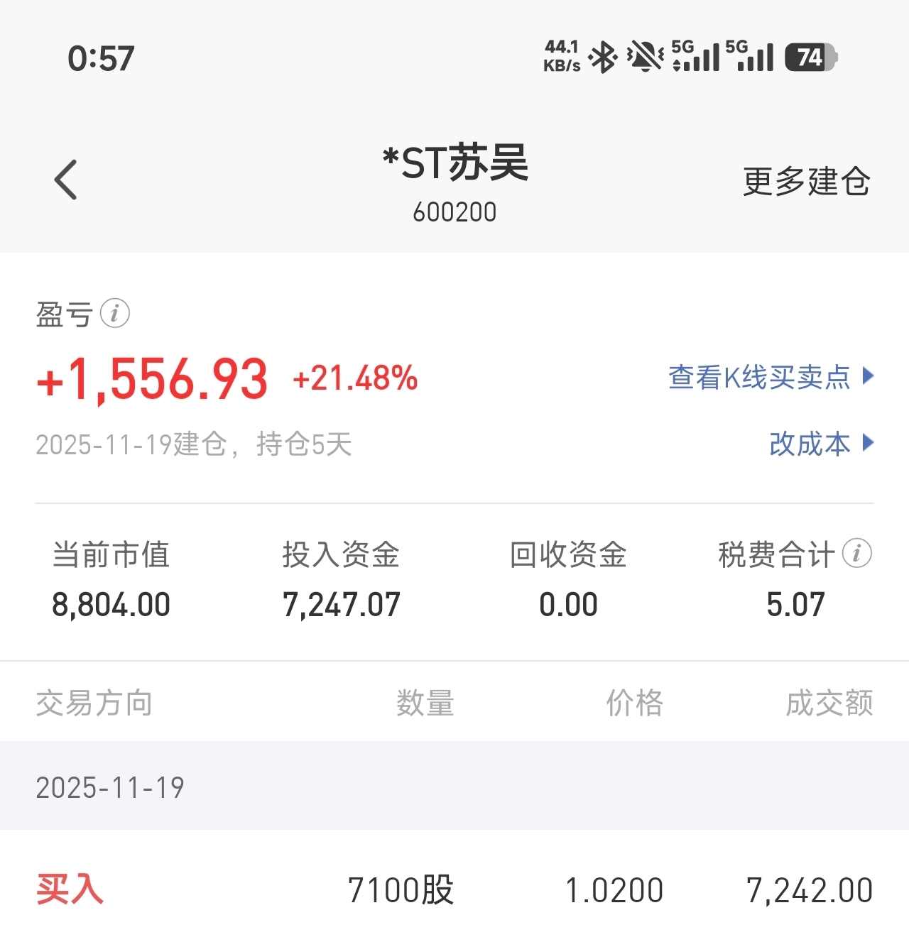 $*ST苏吴(SH600200)$ 大起大落,买个教训