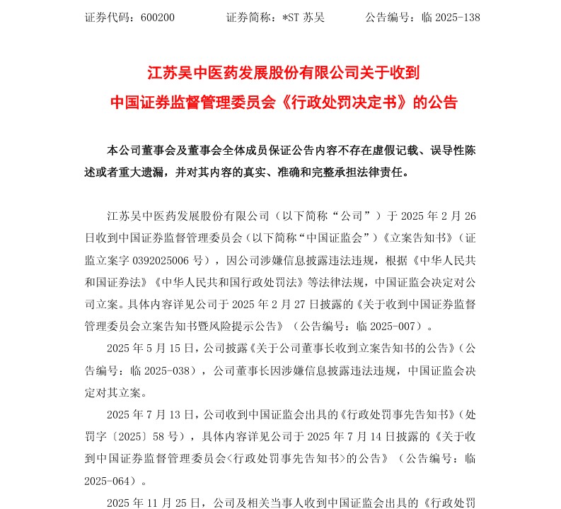 证监会出击,*ST苏吴信披违规坐实收《行政处罚决定书》。时间节点至关重要!201