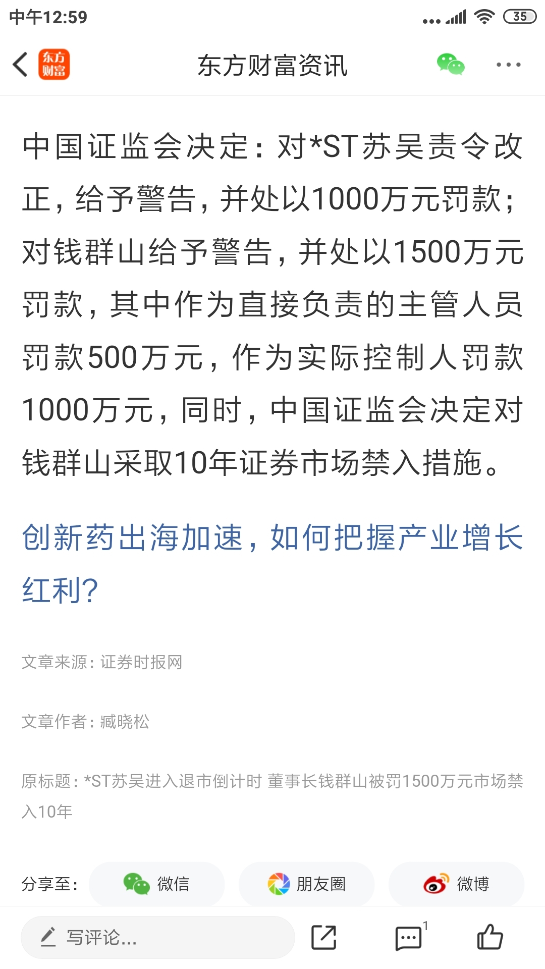 $*ST苏吴(SH600200)$ 责令改正,警告。不退。