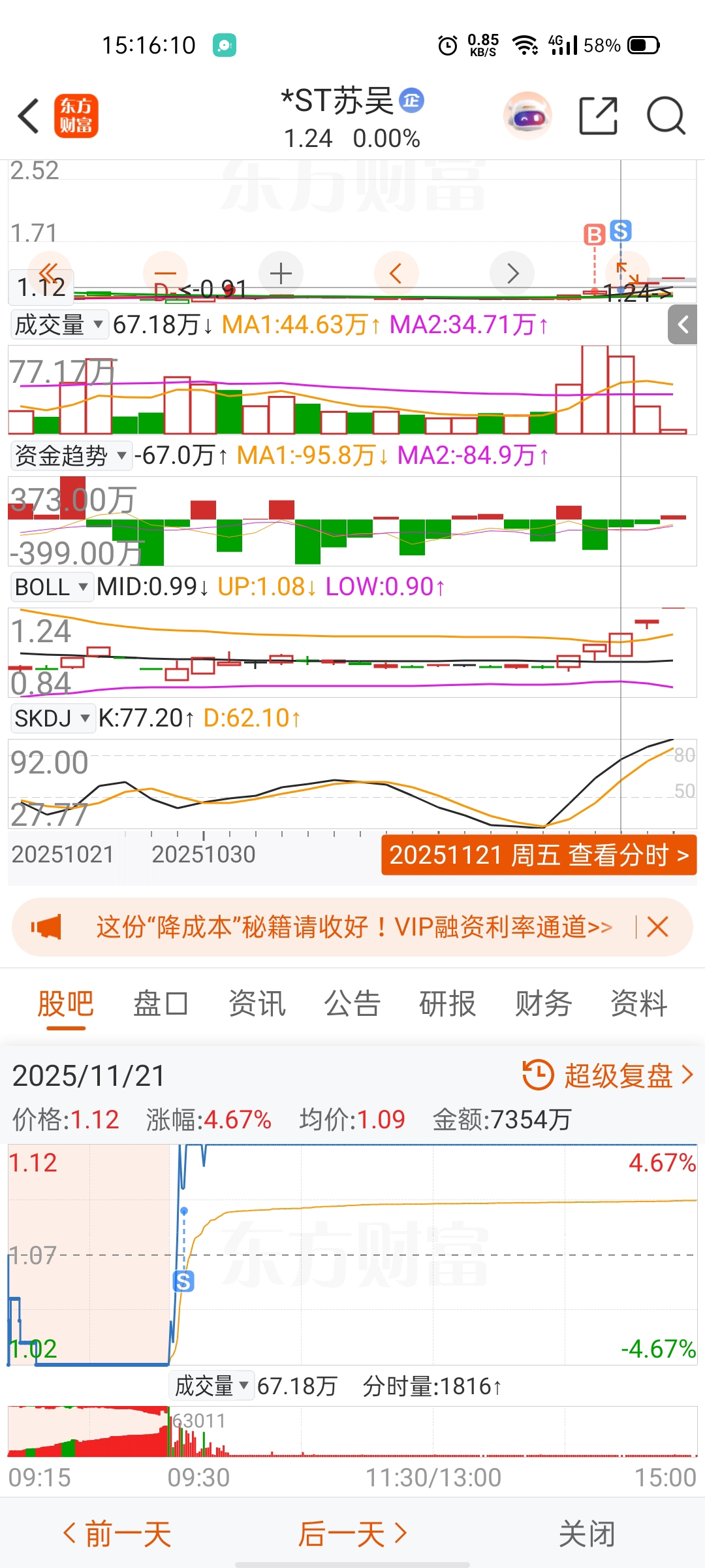 $*ST苏吴(SH600200)$ 有时候炒股票真得靠点运气,本以为卖飞了还有点后悔呢,真是福兮祸所伏,祸兮福所倚啊