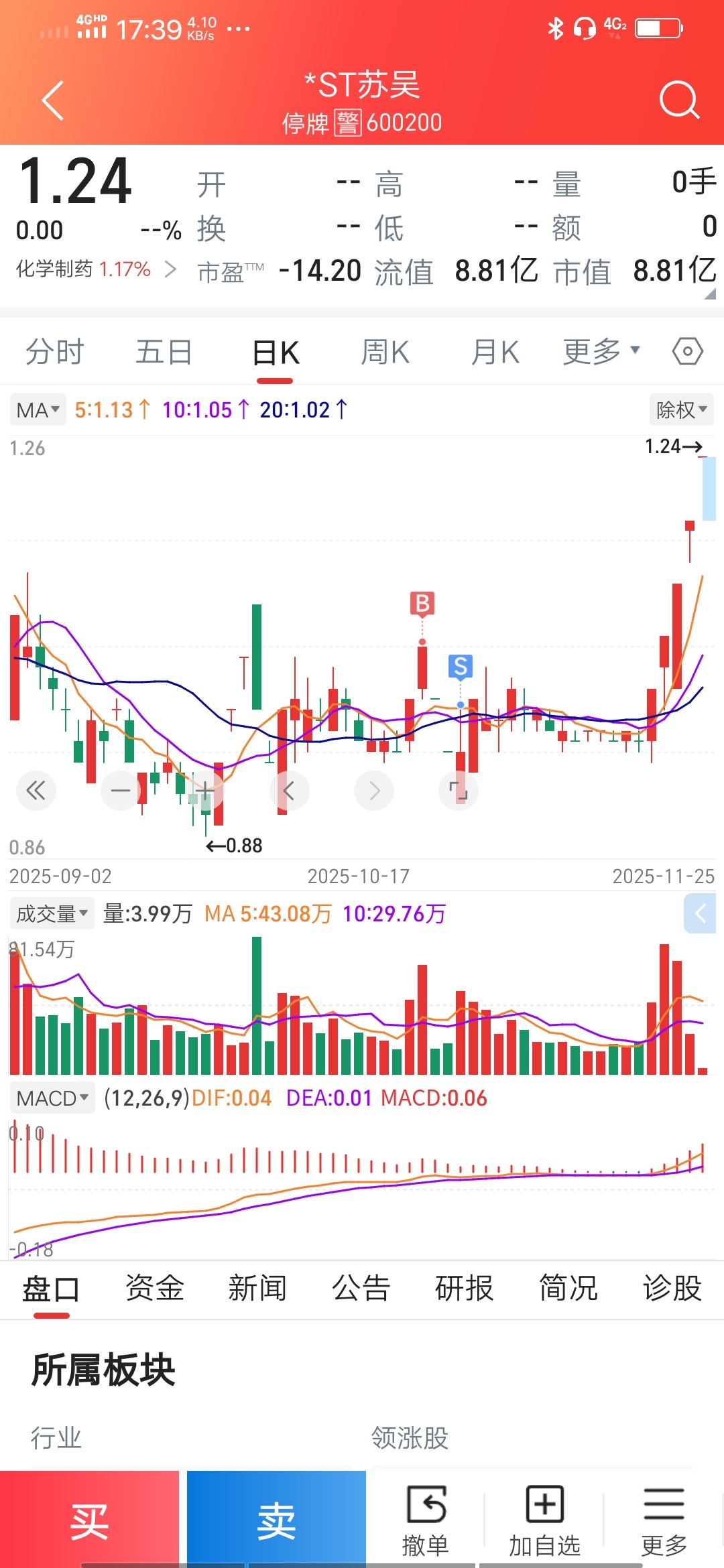 $*ST苏吴(SH600200)$ 意料之中,我也花30个W顶过板,过后连续跌停就知道包退市,这次上涨也是亲眼看他涨停,我都觉得奇怪,但还是不会去买,那有票涨停,就关地板勒,,,