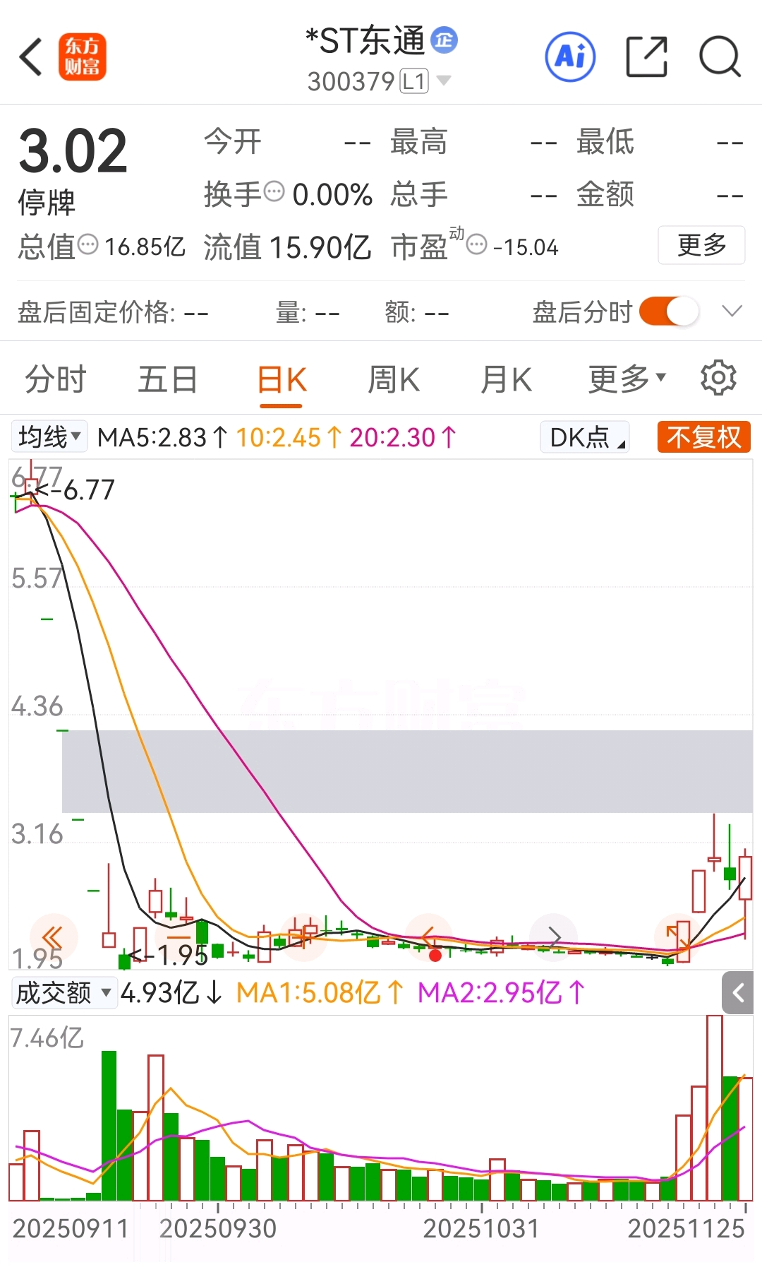 要知道,截至2025年9月底,*ST东通股东数量为45869户。更要命的是停牌前一天,*ST东通涨7.86%,成交额达4.93亿元。