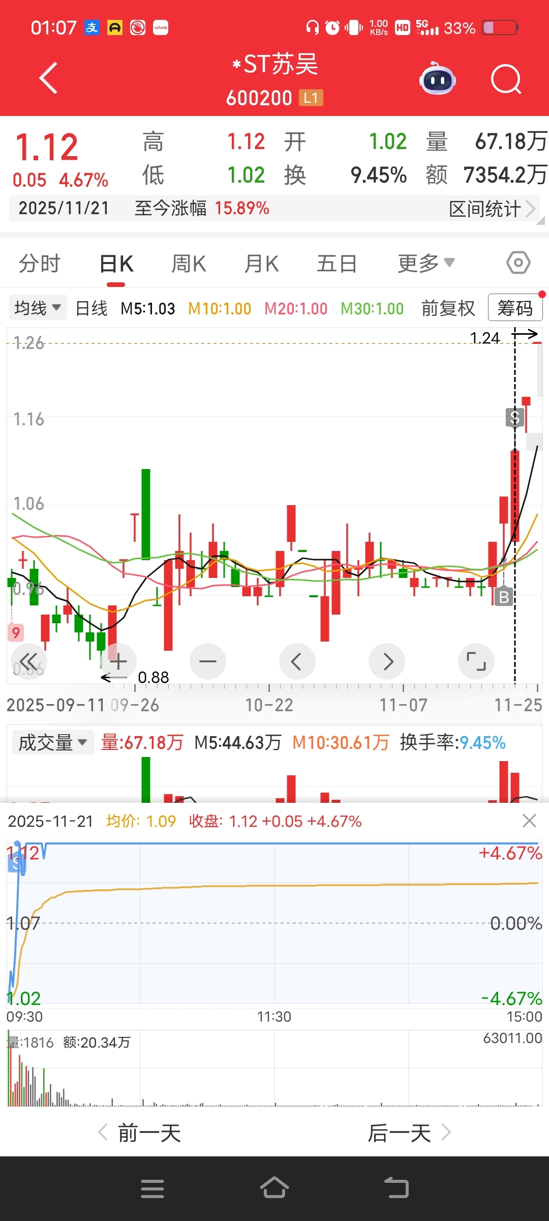 $*ST苏吴(SH600200)$ 差点被闷杀,幸好有挂单的习惯