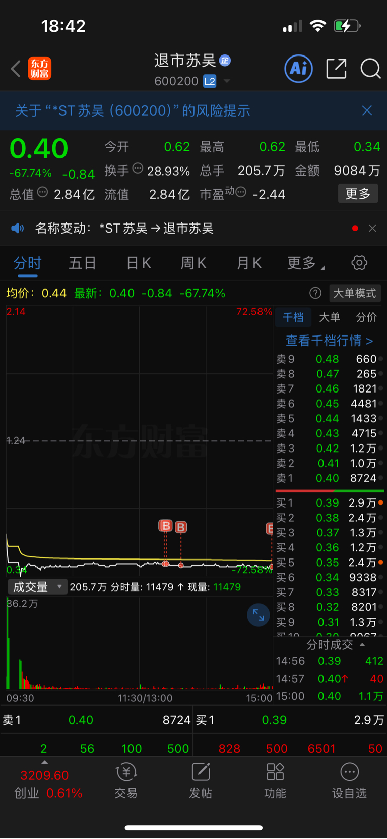$退市苏吴(SH600200)$ 明天会不会被埋了