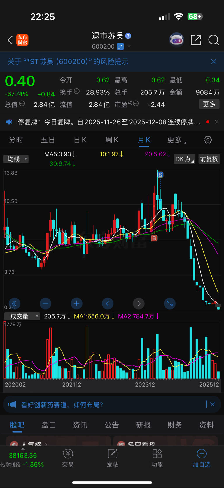 $退市苏吴(SH600200)$ 还没有跑的早啊!