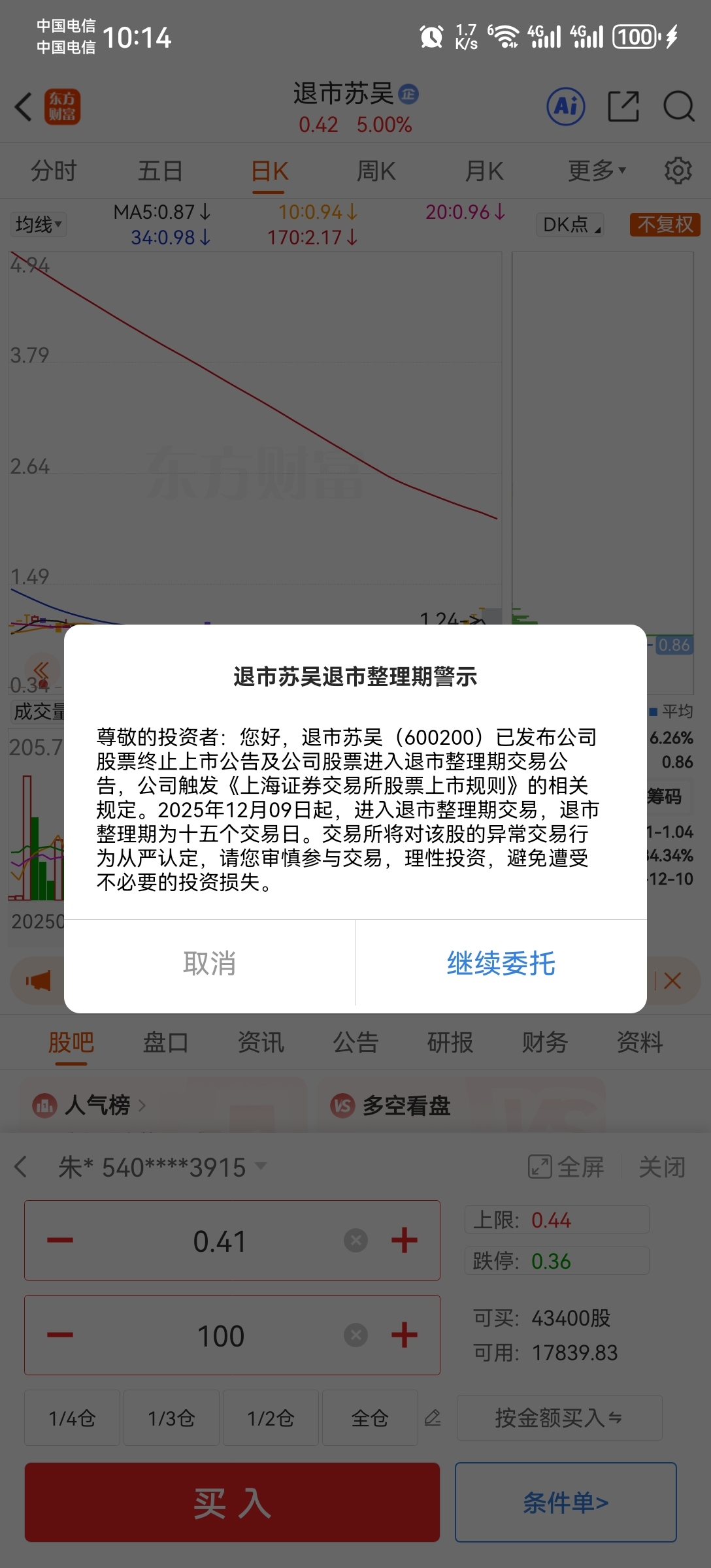 $退市苏吴(SH600200)$ 40块钱买个老三板的通行证