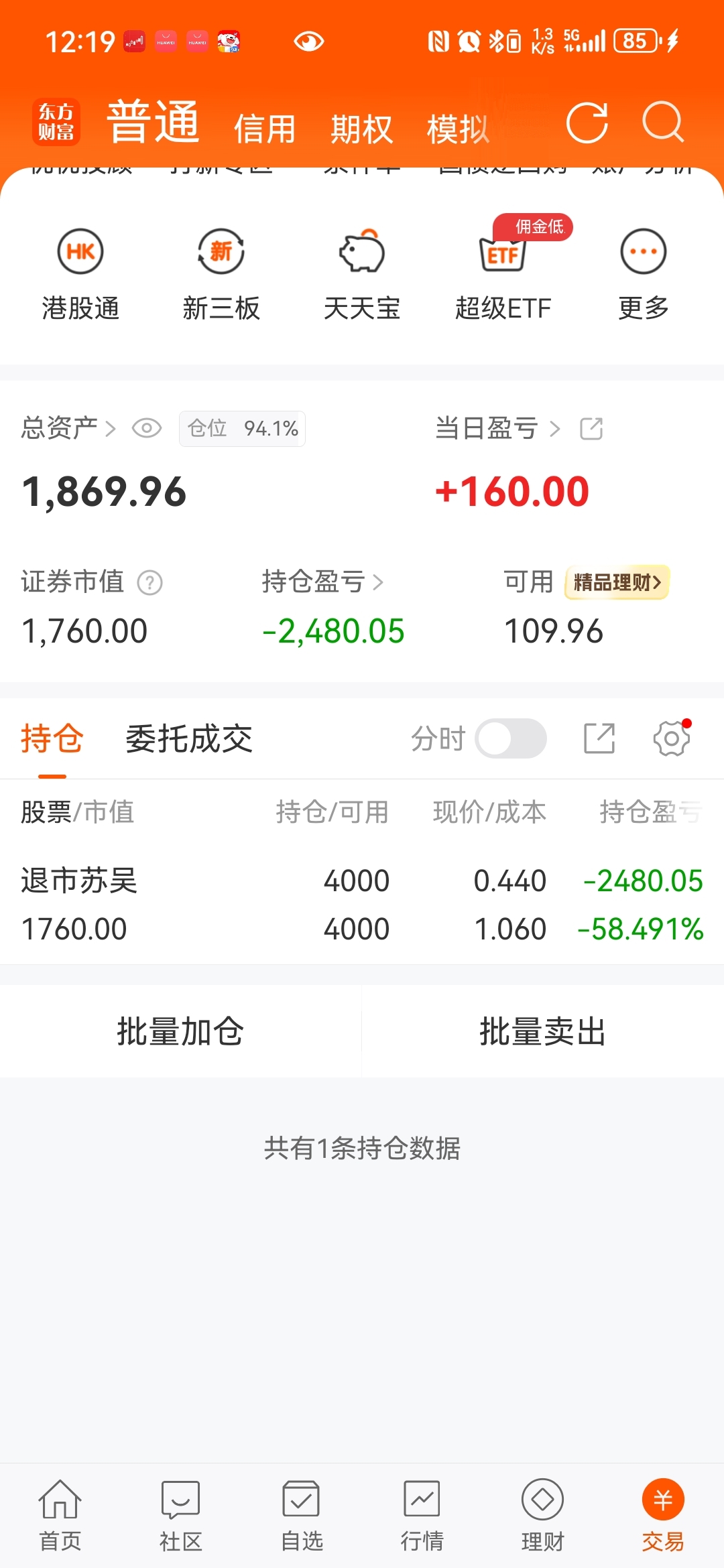 $退市苏吴(SH600200)$ 加仓都没权限,四毛到三板还有机会吗