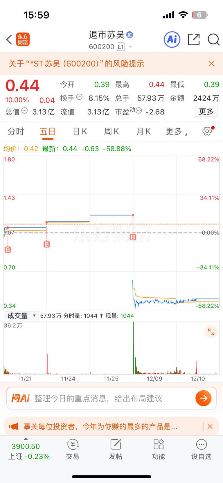 $退市苏吴(SH600200)$ 无所谓了,去三版吧,跑的兴趣都没了