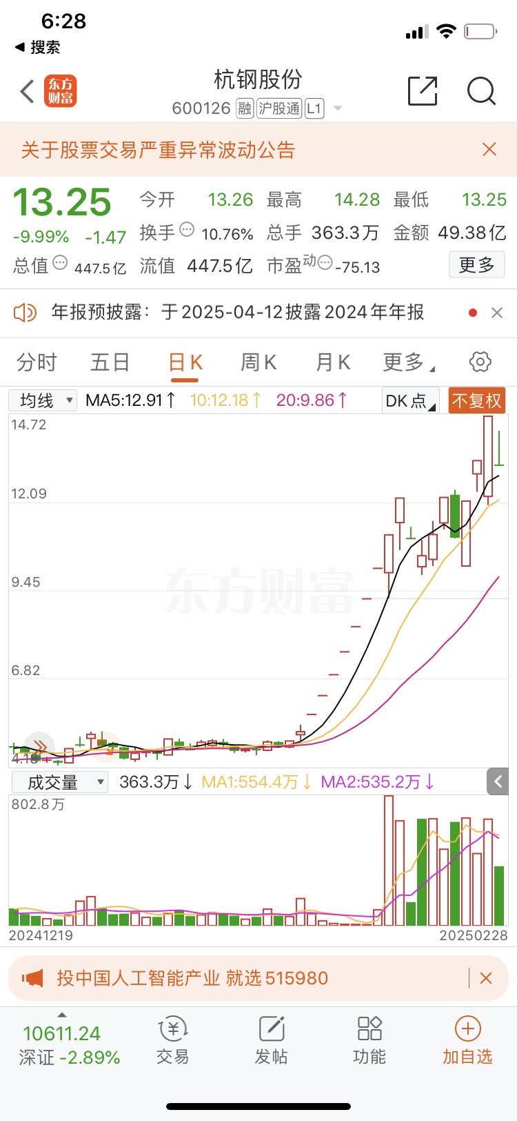 股价只要能拉上去,永远不用担心在高位没有散户来接盘。希望生物股份的庄家学学杭钢股