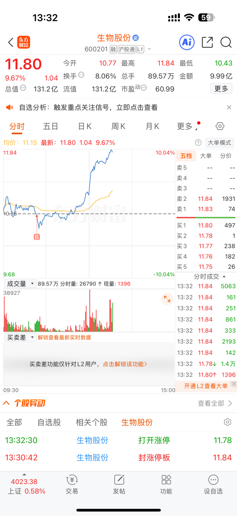 $生物股份(SH600201)$ 终于抓到了一次机会