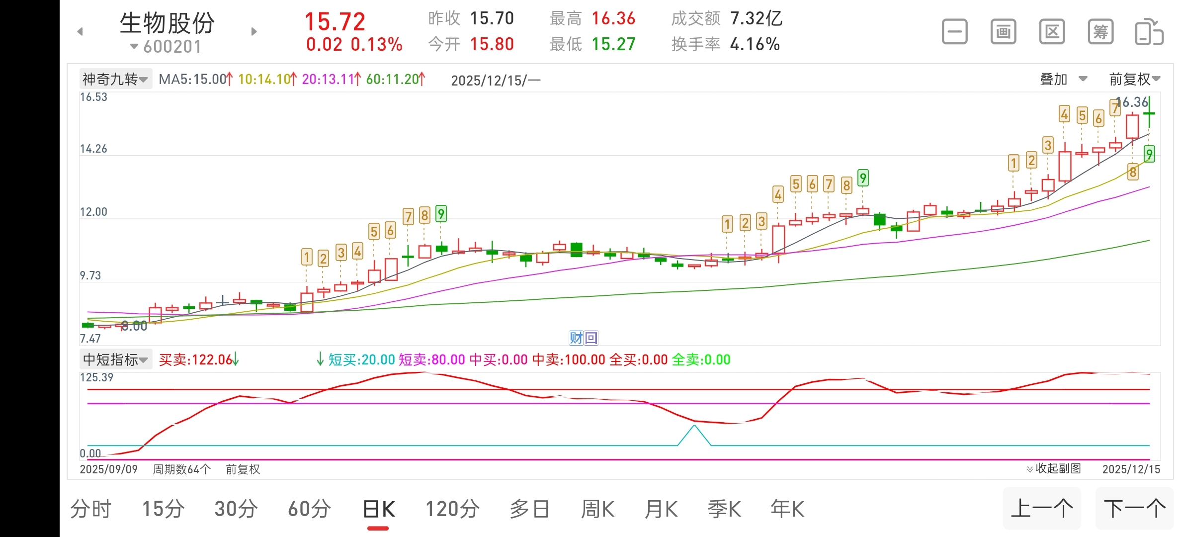 $生物股份(SH600201)$ 温馨提示,阶段性顶部到了
