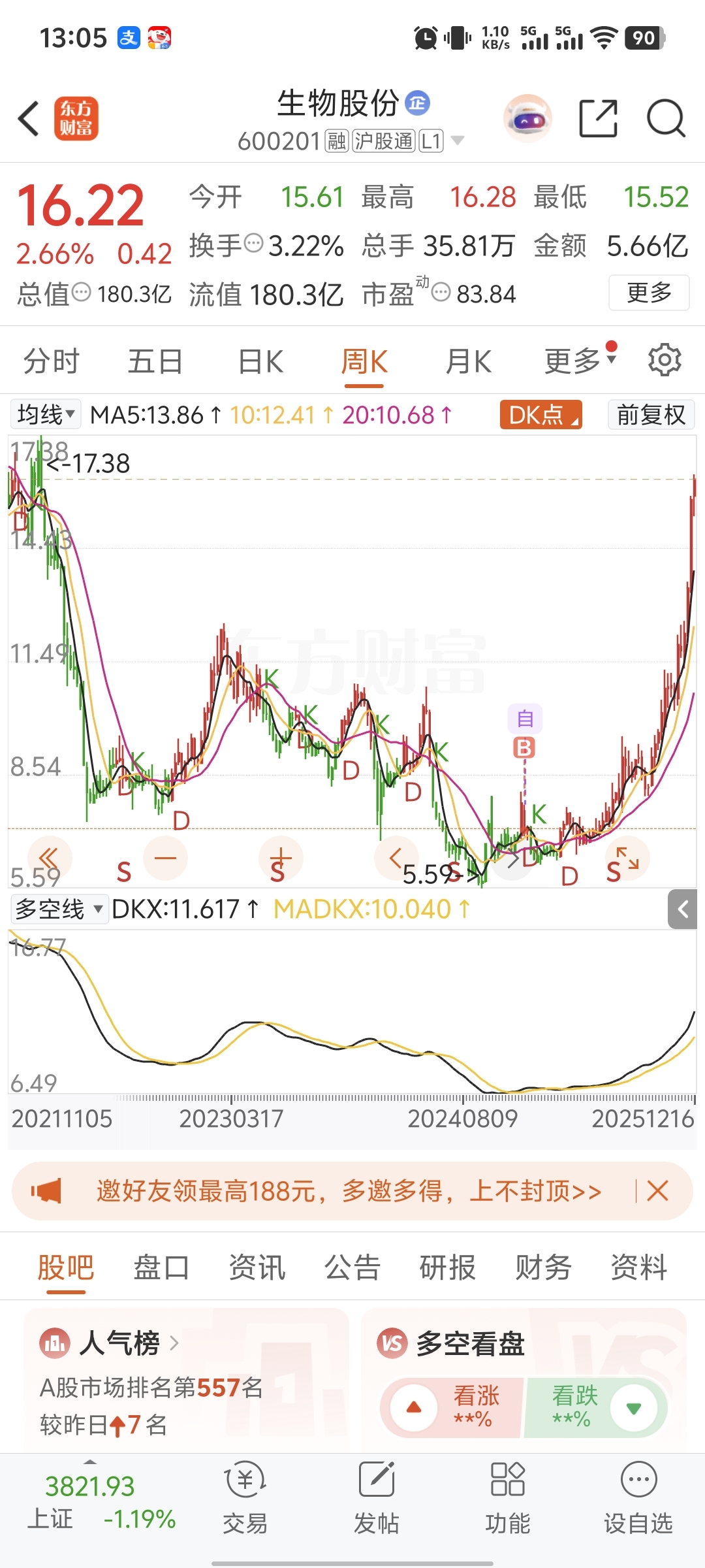 $生物股份(SH600201)$ 谢谢主力大哥,虽然不知道为啥一直涨,但就是谢谢主力大哥,翻倍多了