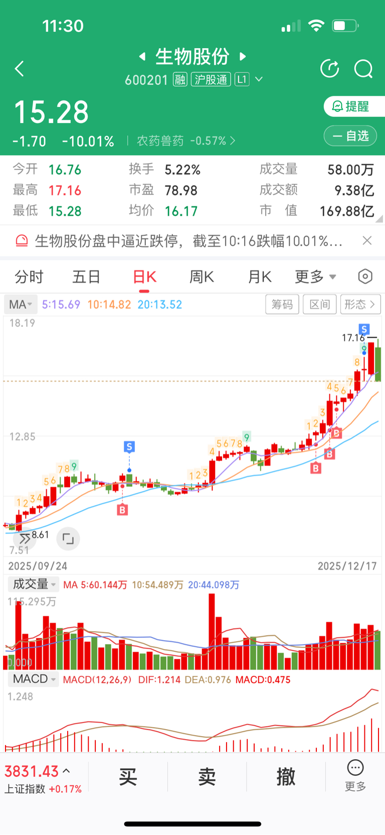 $生物股份(SH600201)$ 前天卖了还觉得卖飞了