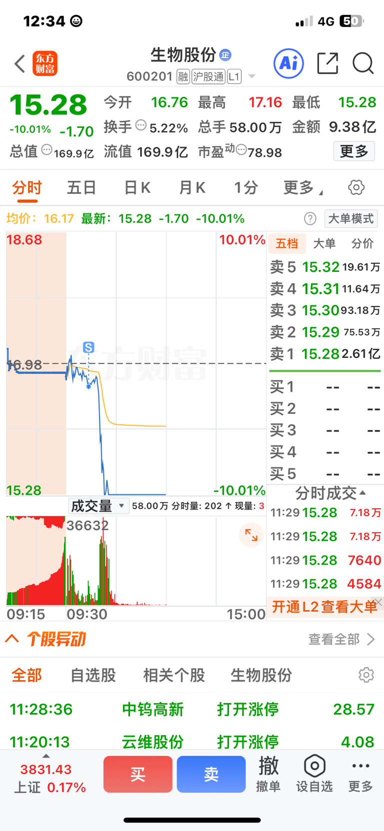 $生物股份(SH600201)$ 你差点割我了知道吗?
