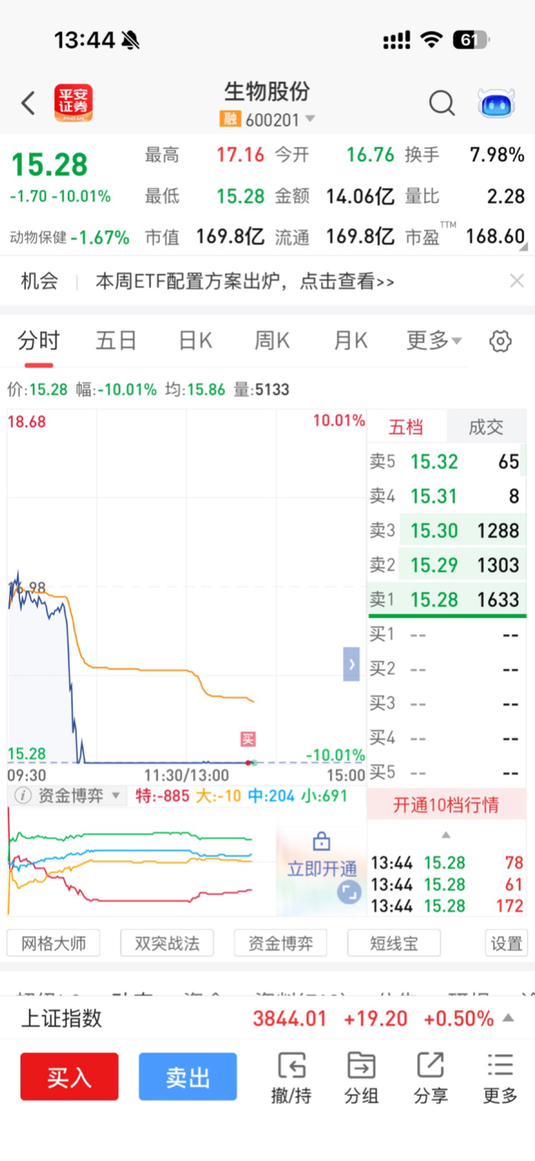 $生物股份(SH600201)$ 富贵险中求,我跌停杀入了