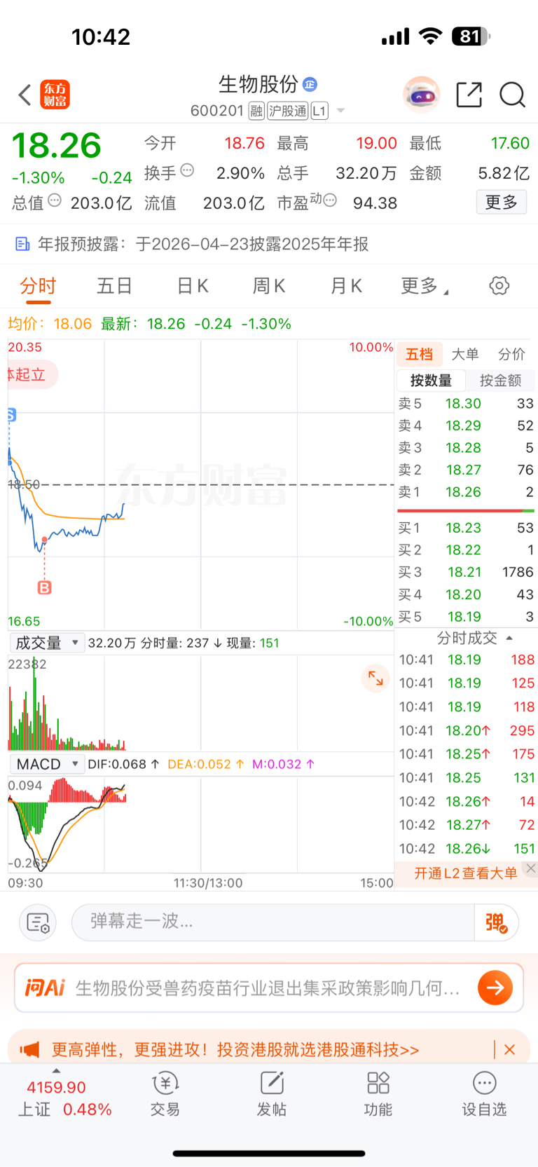 $生物股份(SH600201)$ 做兄弟在心中,使劲往上冲