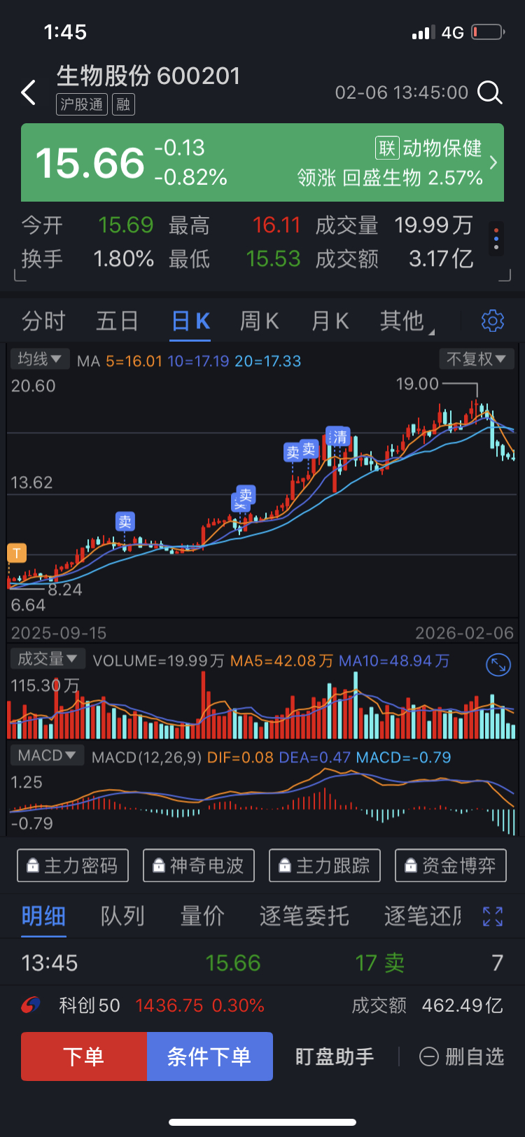 $生物股份(SH600201)$ 按这和阴跌走势,应该会回15.07元找支撑。到时候被套主力会打个援军,股价会有个大的反弹。
