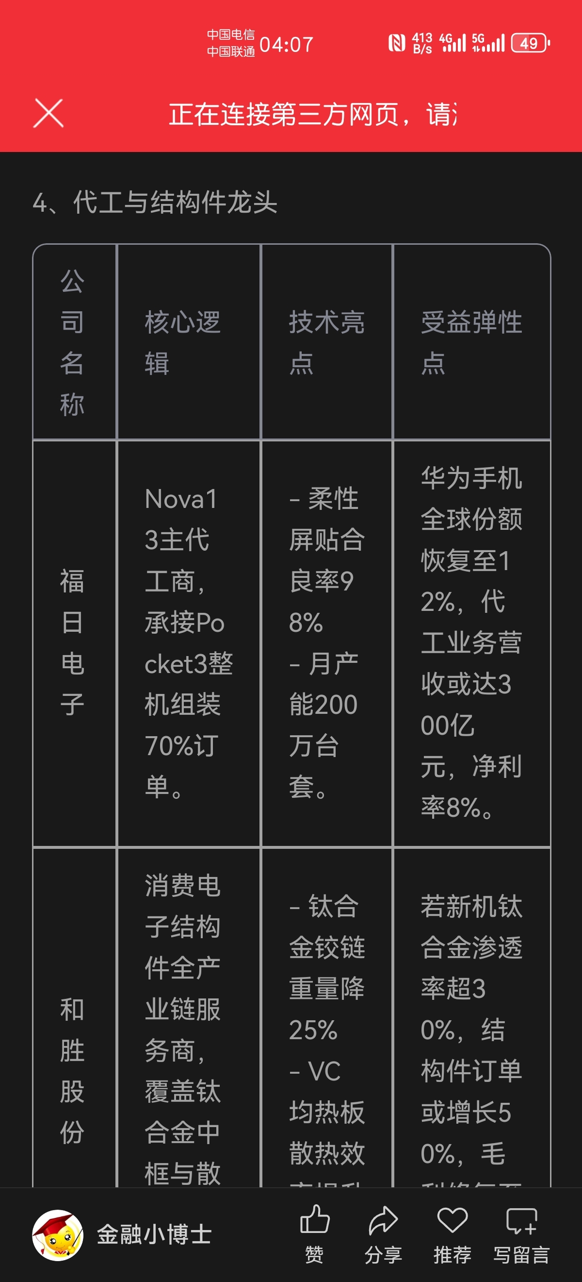 官媒发的,云手机份额预期特别好,福日营收有望突破300亿,净利润8%,也就是24