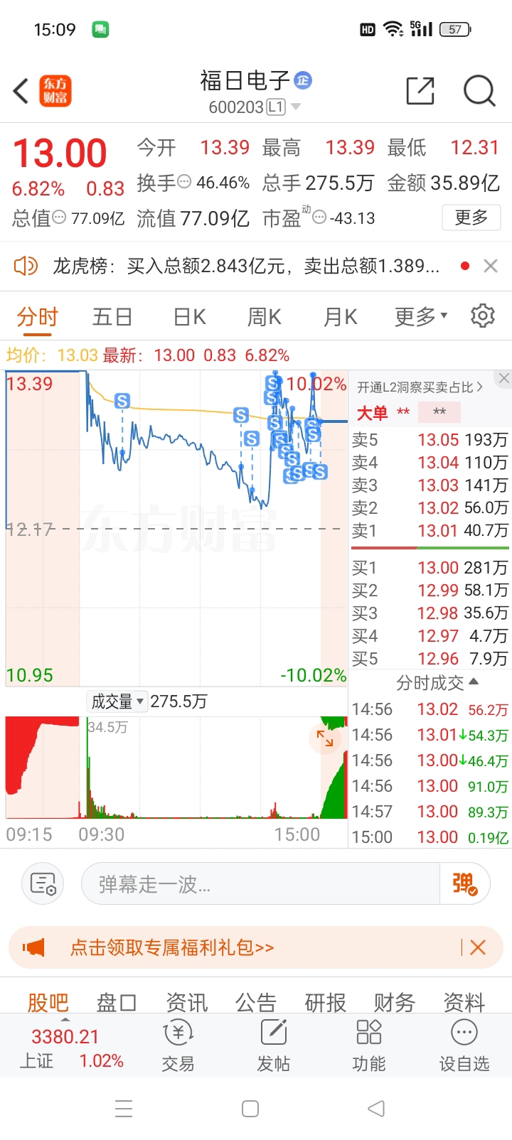 $福日电子(SH600203)$ 108家涨停居然没有你,提心吊胆一天,本来留个底仓的,怕了怕了,街溜子