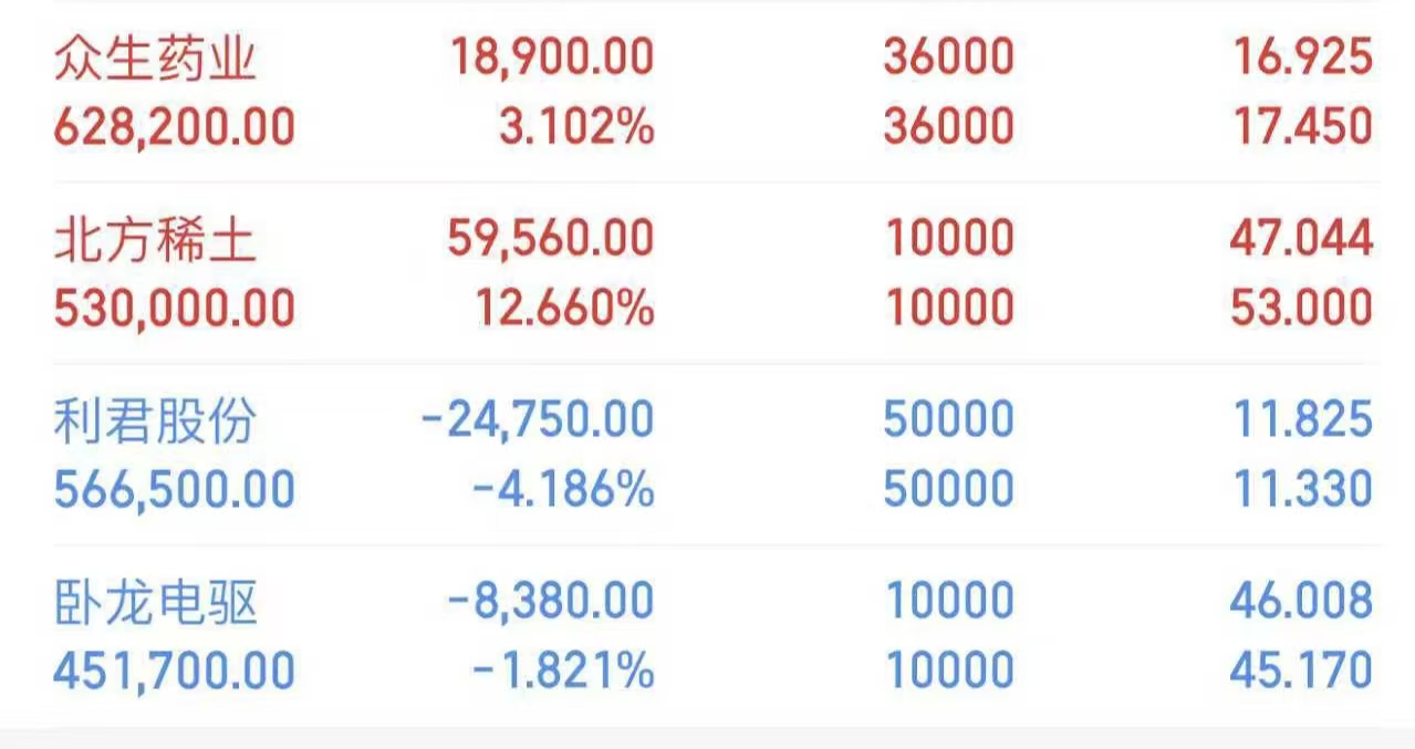 公司主要是医药业务,包括中成药,创新药的研发生产等等。如果今天大盘反弹,科技股或者芯片股回归,不会影响众生药业,众生是调整过两个月的,无论大盘怎么跌,众生向下的空间都是有限的,反弹才是该有的预期。持股的铁子不用担心,拿两周左右,耐性等待医药股的反弹即可,众生药业的目标是20以上。利君股份,周五是受到大盘影响了,利君股份在11快的支撑位也是非常强的,连续半年都没有破这个位,短时间内也不会破这个位置。今天大盘反弹,利君股份也会跟着反弹的,等待股价修复起来后落袋。
