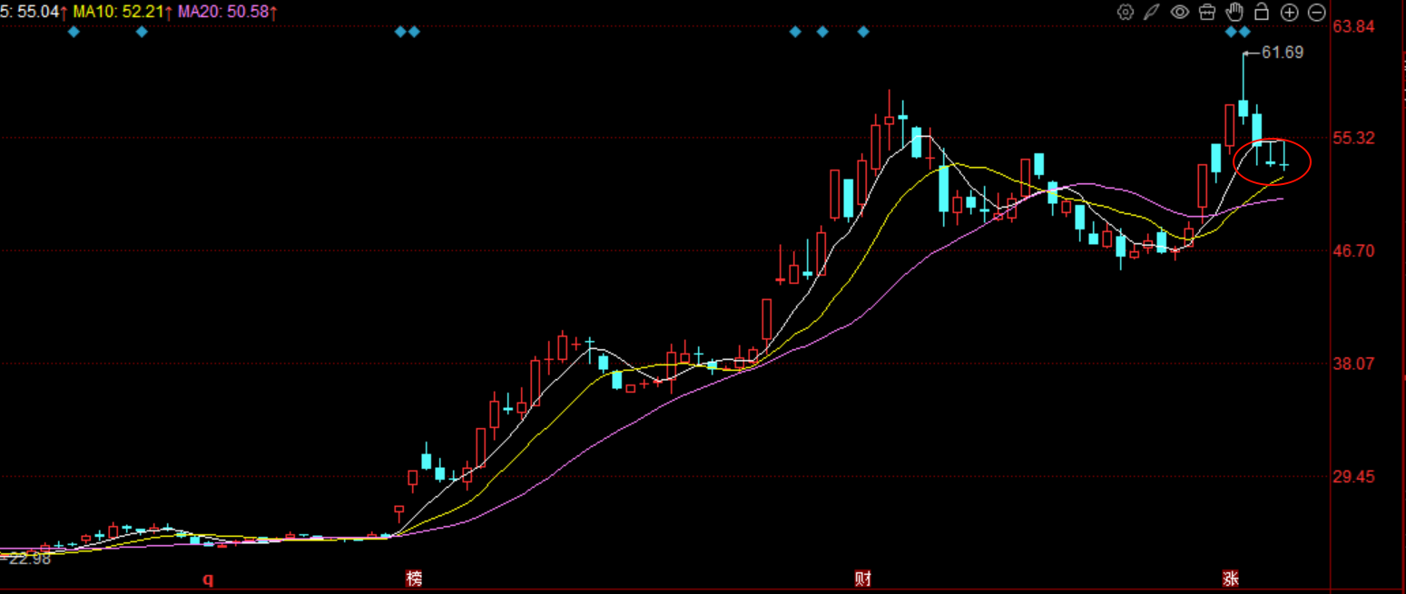 稀土行业的估值其实还是低的,稀土作为各行各业必不可少的元素,重要性非常高,所以最近几个月终于迎来价值回归,北方稀土走了三波行情,现在是第三波之后的调整阶段,趋势已经得到加强,所以不容易掉头再调整的,上周调整了几天,基本上幅度就够了,周四周五也是连续两天的十字星形态,出现多空势均力敌的平衡,代表获利筹码已经消化,并且洗盘完成,本周的预期是继续反弹,持股一周左右,反抽到高点可以逐步落袋。