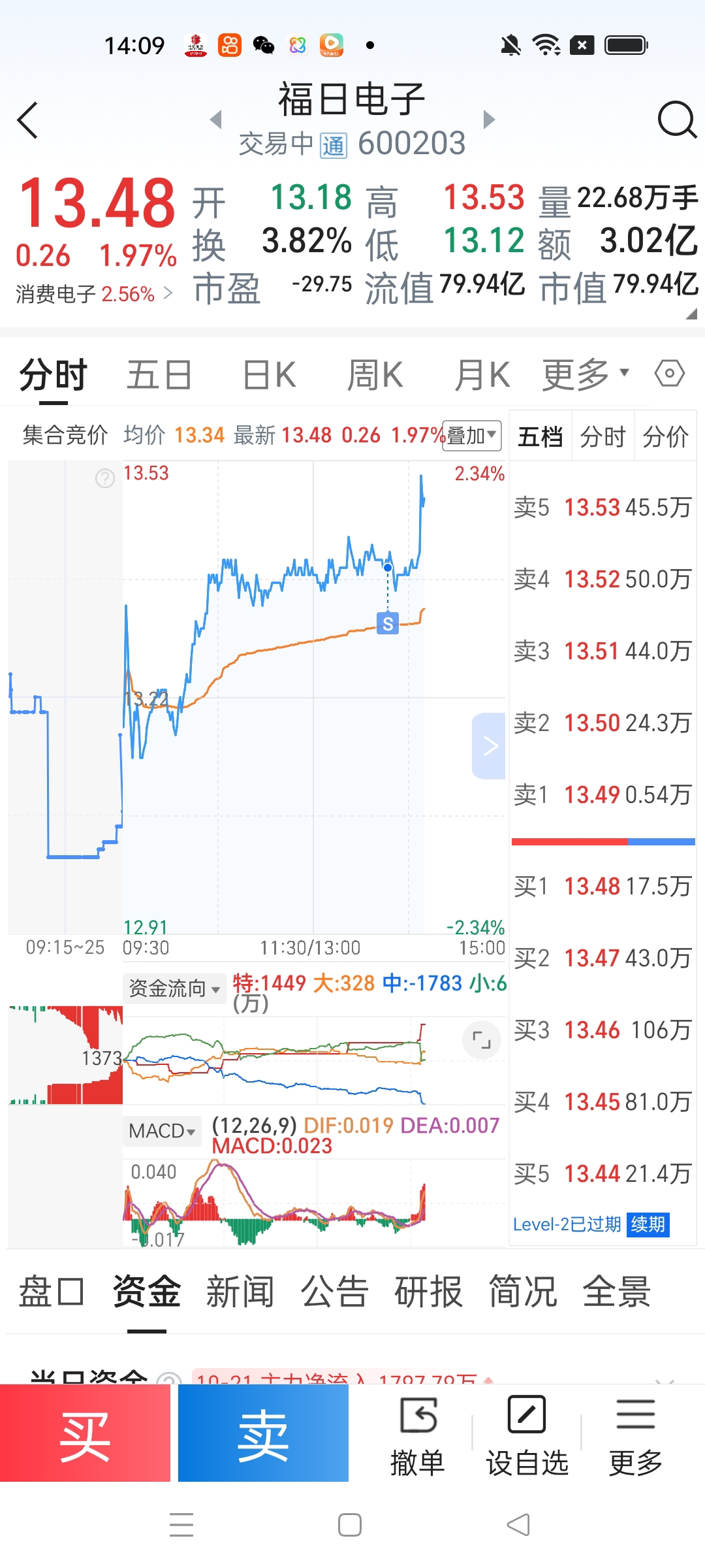 $福日电子(SH600203)$ 差我这点