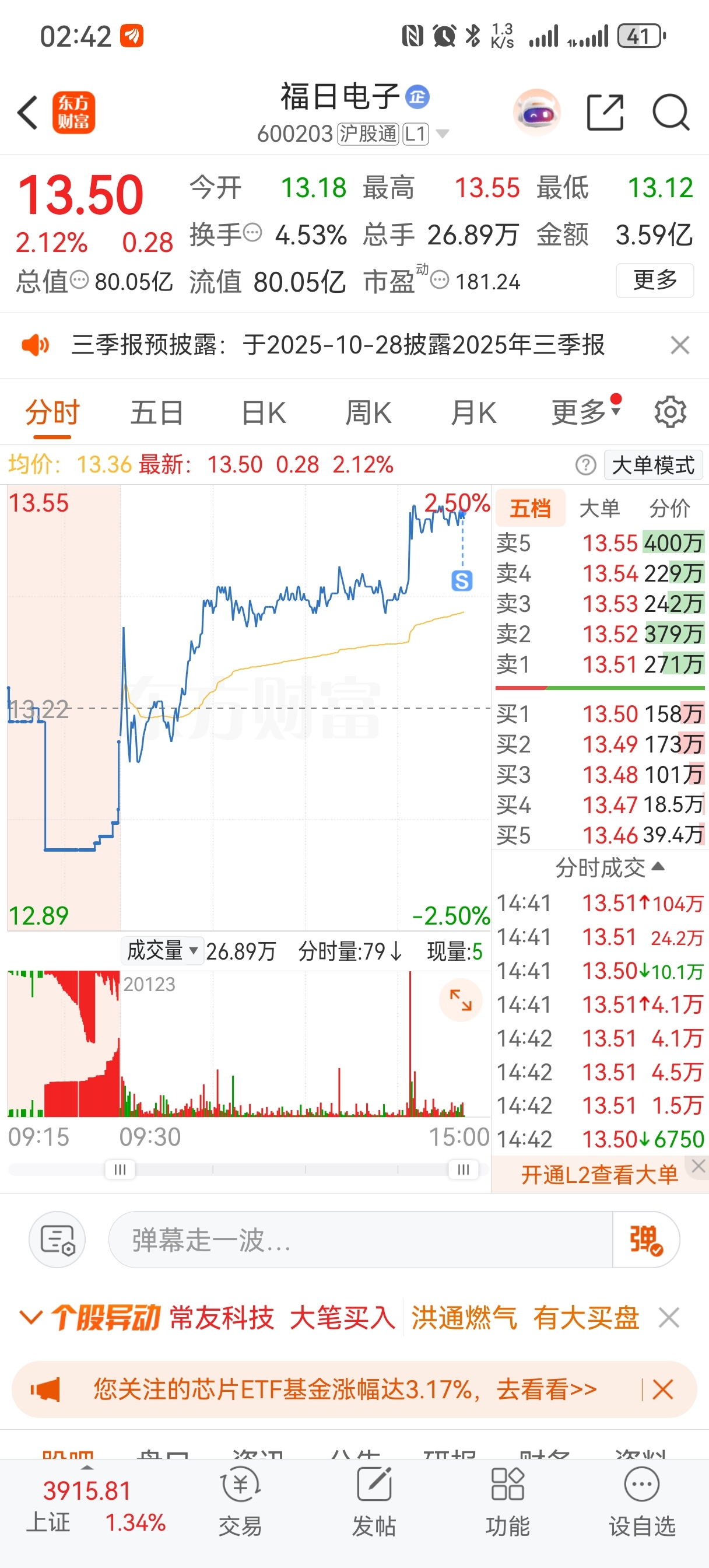 $福日电子(SH600203)$ 先走了,留下的兄弟发财