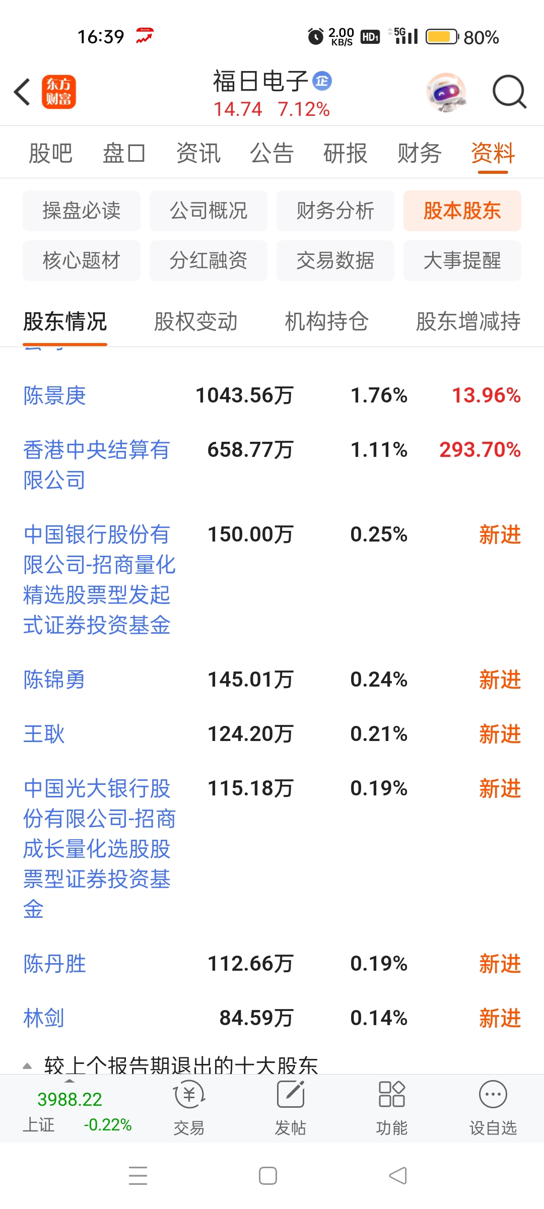 $福日电子(SH600203)$ $福日电子(SH600203)$ 拉尾盘你们说是非奸即盗,砸尾盘你们说是主力拉高出货。分时缓慢抬升主力是真买,福日电子被套散户真多,要不早盘就板了,只有拉升洗盘才能洗走头铁盯子户,主力拉起来让你们跑他做慈善吗?要你们手上的货!其它消息面都知道,也无所谓,资金面看最新持仓,必有一波行情,短线的有利润随时跑没毛病,做中长线耐心吃大肉!