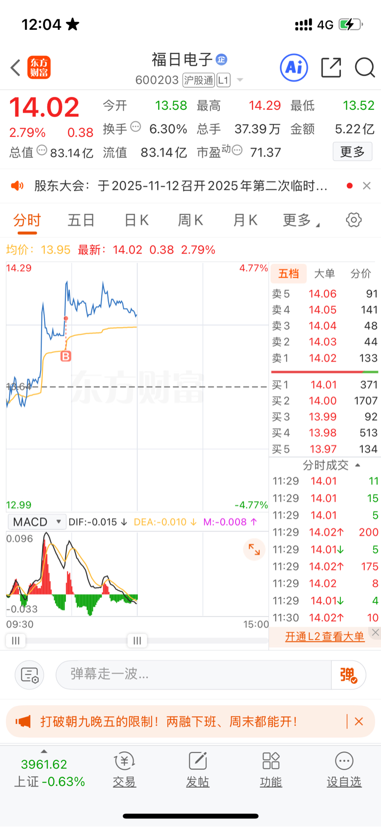 $福日电子(SH600203)$ 冒个泡,我14成本!