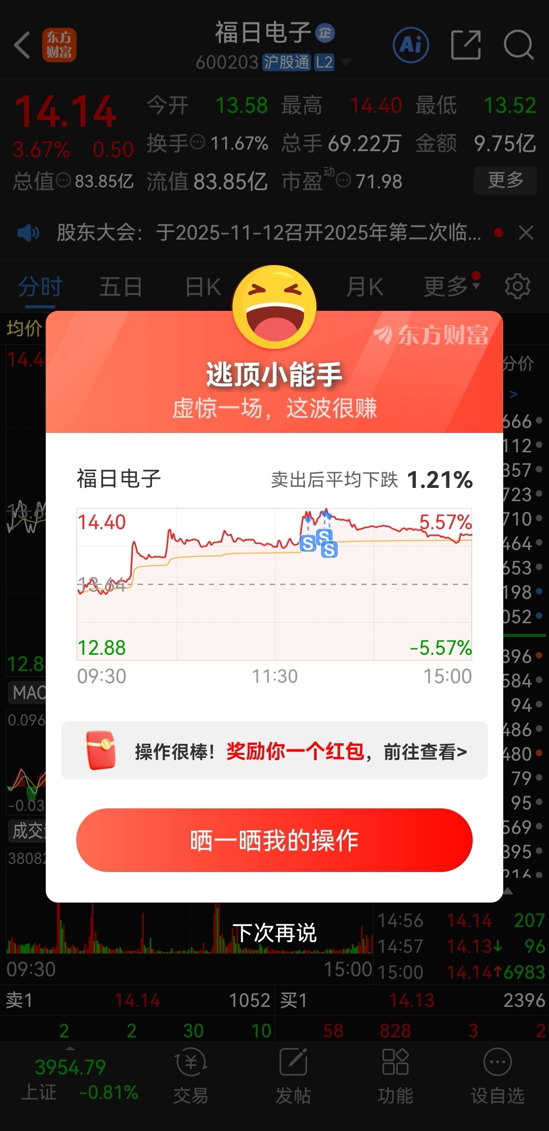 $福日电子(SH600203)$ 今天等了很久,没有拉板的意思,就只有先出来,下周再看看有无机会