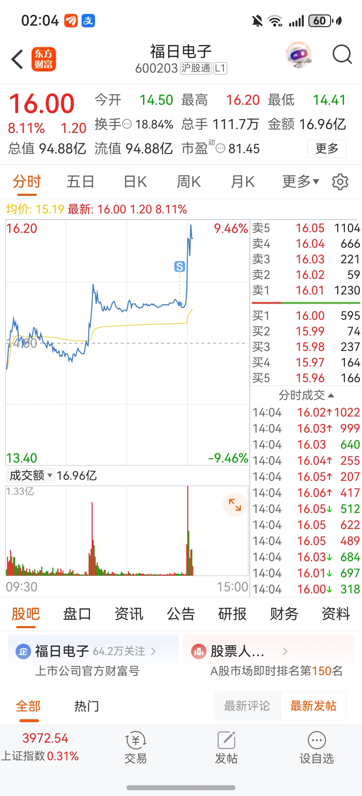 $福日电子(SH600203)$ 主力就差我这点筹码吗
