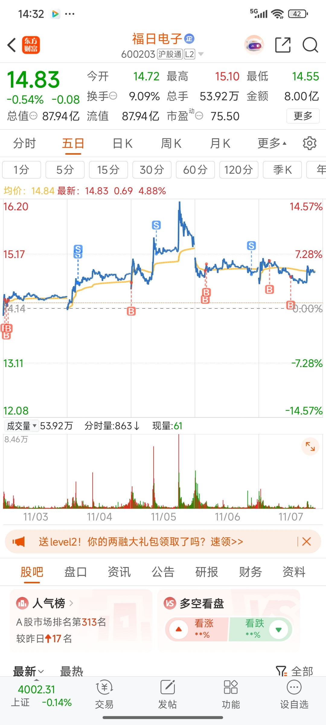 $福日电子(SH600203)$ 主力和你决战到天亮