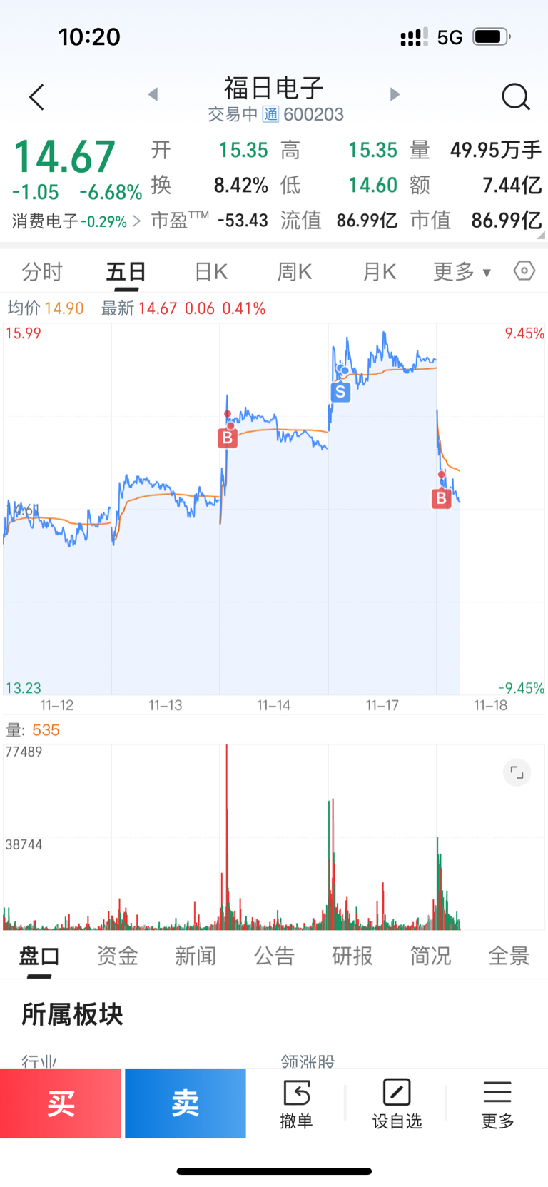 $福日电子(SH600203)$ 昨天清了,今天进来打个底仓,明天低开小补