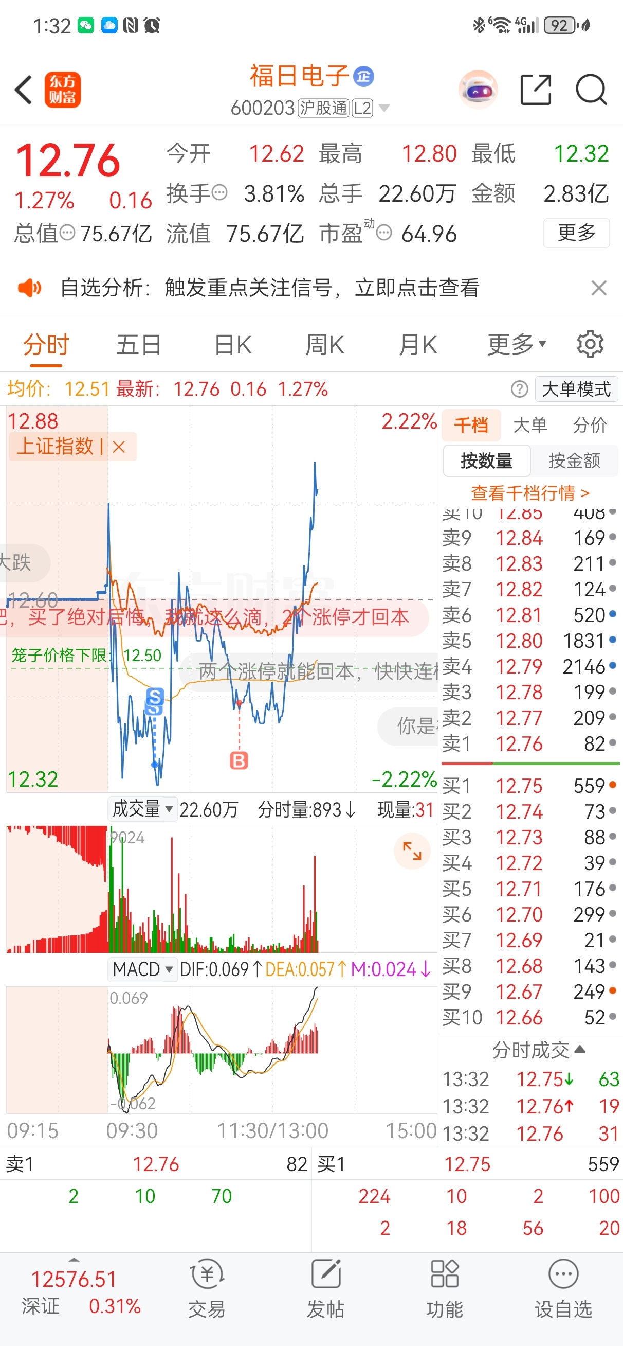 $福日电子(SH600203)$ 学人家做了600元的冤枉T