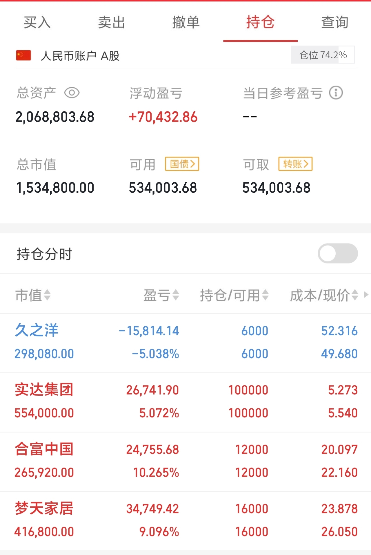 目前持有:合富中国,实达集团,久之洋,梦天家居