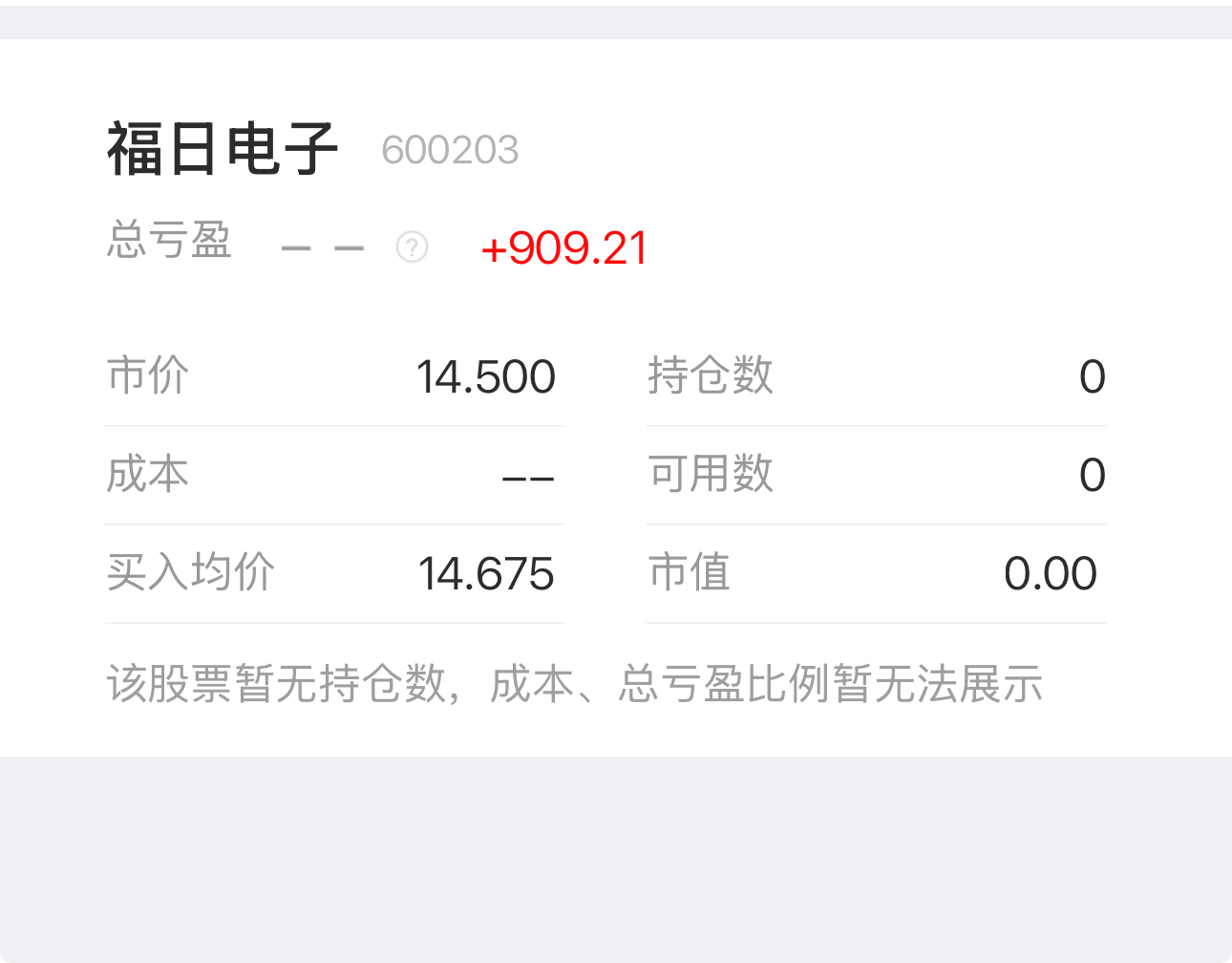 $福日电子(SH600203)$ 每次赚几万没卖后来亏几万这次见好就收不贪了
