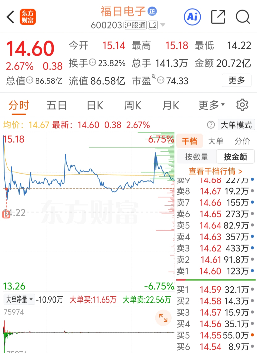 $福日电子(SH600203)$ 周一低开高走回落,收盘高于开盘价。