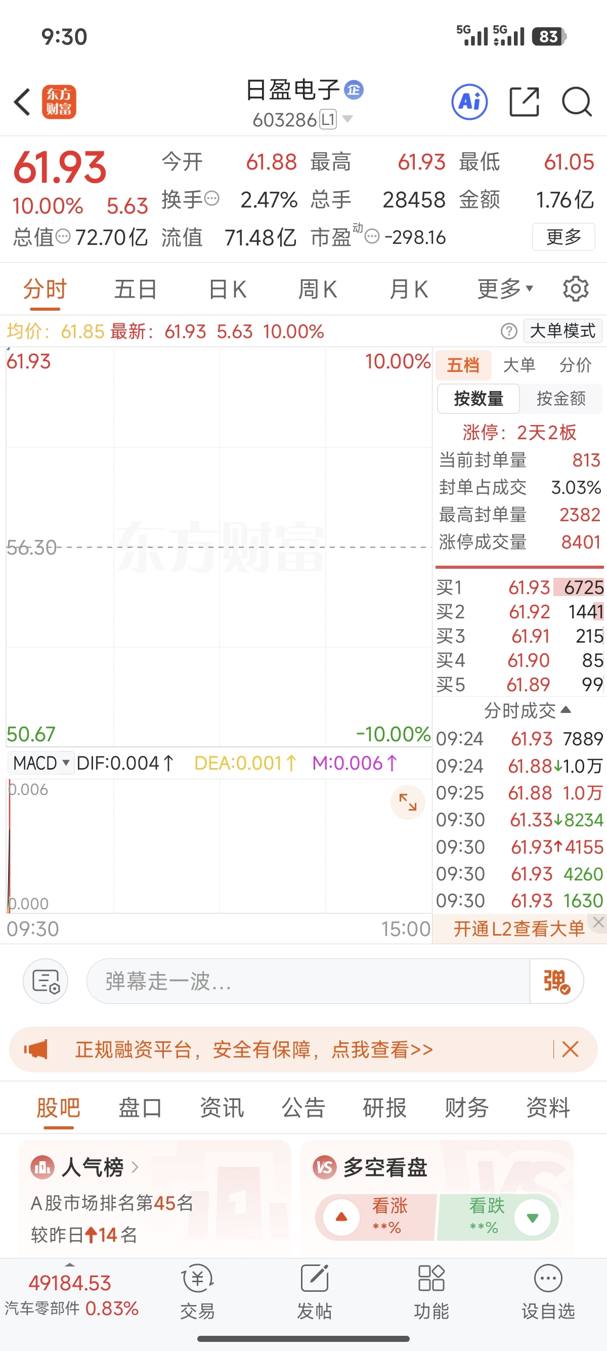 日盈涨停了