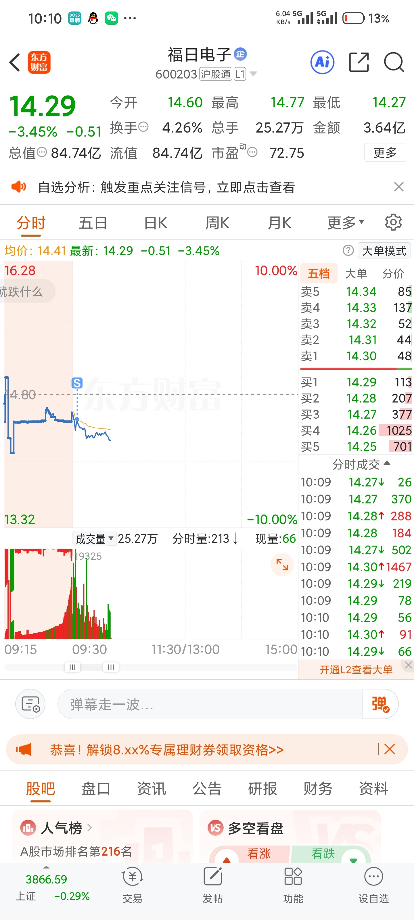$福日电子(SH600203)$ 终于卖了,一身轻