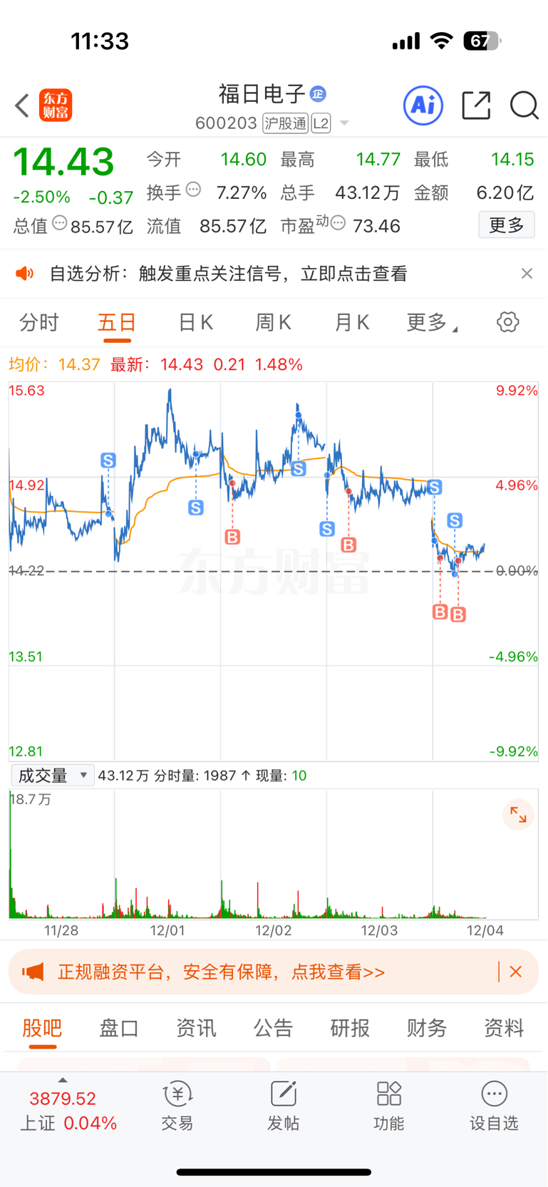 $福日电子(SH600203)$ 耐心持有,高抛低吸