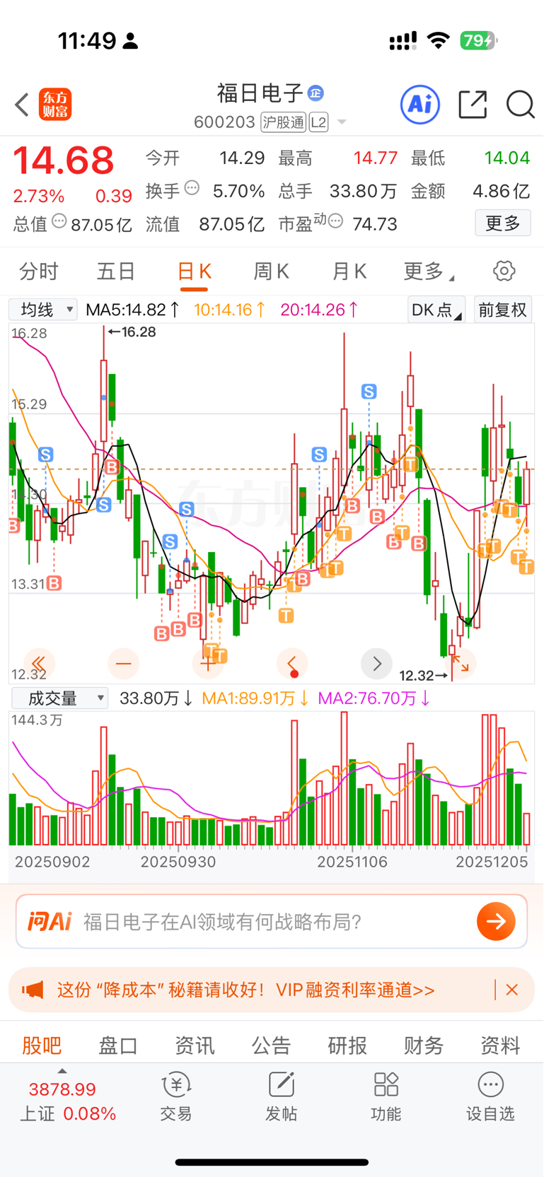 $福日电子(SH600203)$ 主力,涨跌你都甩不掉我,我成本又降2毛