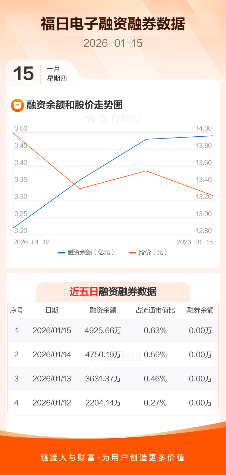 交易所最新数据显示,福日电子于2026年1月15日获融资买入1702.09万元,融资偿还1526.62万元,当日融资净买入175.47万元。目前,该股融资余额4925.66万,占流通市值比例为0.63%。