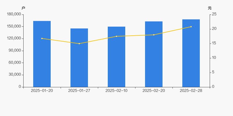 自2025年1月27日以来,公司股东户数连续3期上涨,截至目前增幅为15.53%。2025年1月27日至2025年2月28日区间股价上涨39.04%。