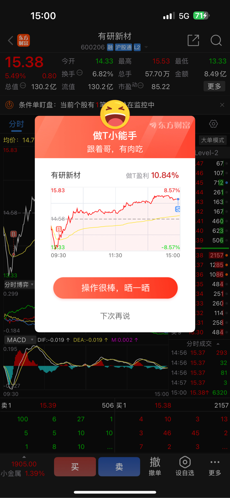 $有研新材(SH600206)$ 唉,没那命,昨天t飞了,今天还是飞,一点一点做吧,成本22补到20.8,t完了成本还在19.8
