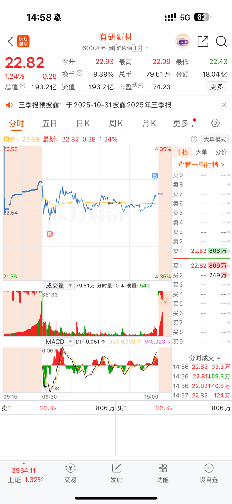 $有研新材(SH600206)$ 挂了个单 居然卖出去了