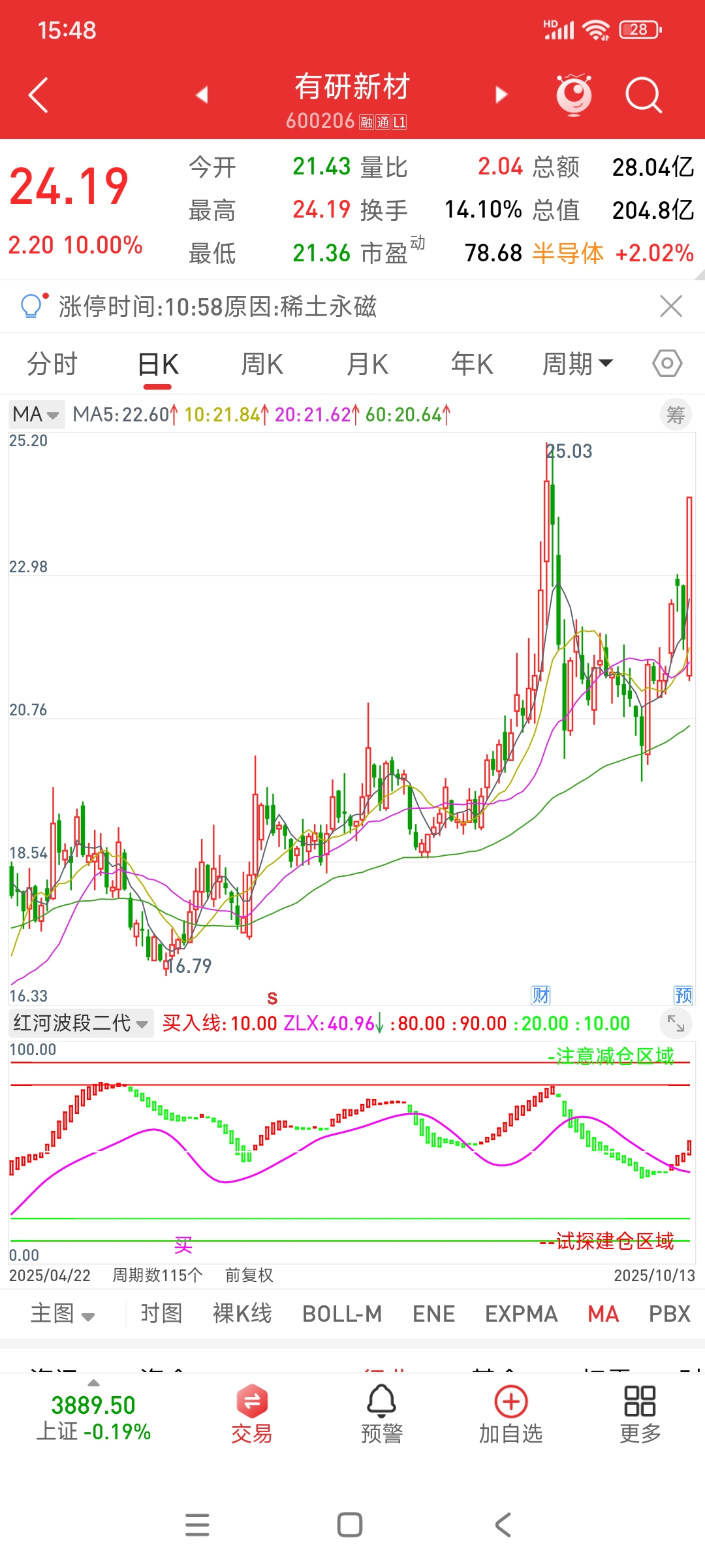 $有研新材(SH600206)$ 已经很直观了,红柱不停,上涨不止,这里继续